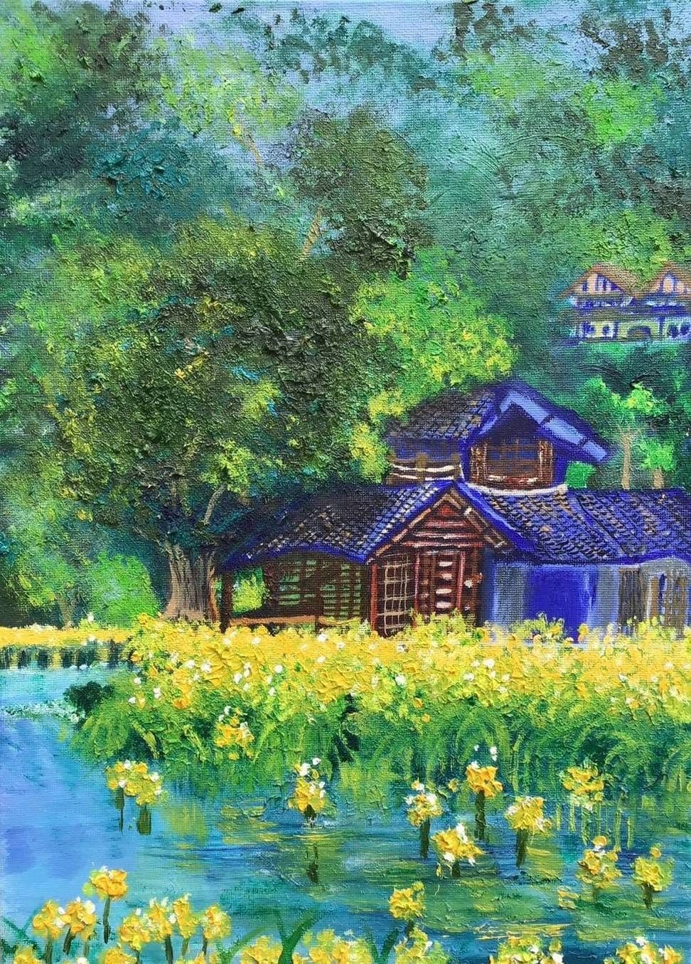 作者-王素新 作者-王素新 「努力為家終不悔」姓名:王素新。**左側肢體癱瘓**我是王素新, 育有兩個小孩 ,單親媽媽,101年,因小孩的補習費及家庭開銷所需,從事早上女工及晚上清潔工的工作,致使體力不堪負荷,但是為了家庭,咬緊牙關,持續下去!有一天,因多年來的工作壓力及負擔,使身體搖搖欲墜,凌晨下工後,在家裡,眼冒金星,不支倒地,之後送至急診,診斷出因腦袋血管腦栓壓迫破裂,導致左側半身肢體癱瘓,也因為身體機能不足,使生活不便,而領取極重度殘障手冊迄今,仍舊努力的復健及學習中。在政府的協助下,得到學習繪畫的機會,還有阮老師的指導,剛好帶出自我對於繪畫的興趣和喜愛,及對藝術創作的熱忱!也因為對於繪畫充滿熱愛,所以不管是油畫還是水彩,都略有涉獵,並持續學習中。希望來日有所成就,發揮所長,在繪畫路上,如倒吃甘蔗般甘甜,並有機會將老師的愛心和精神發揚光大。 作品集 購買畫作