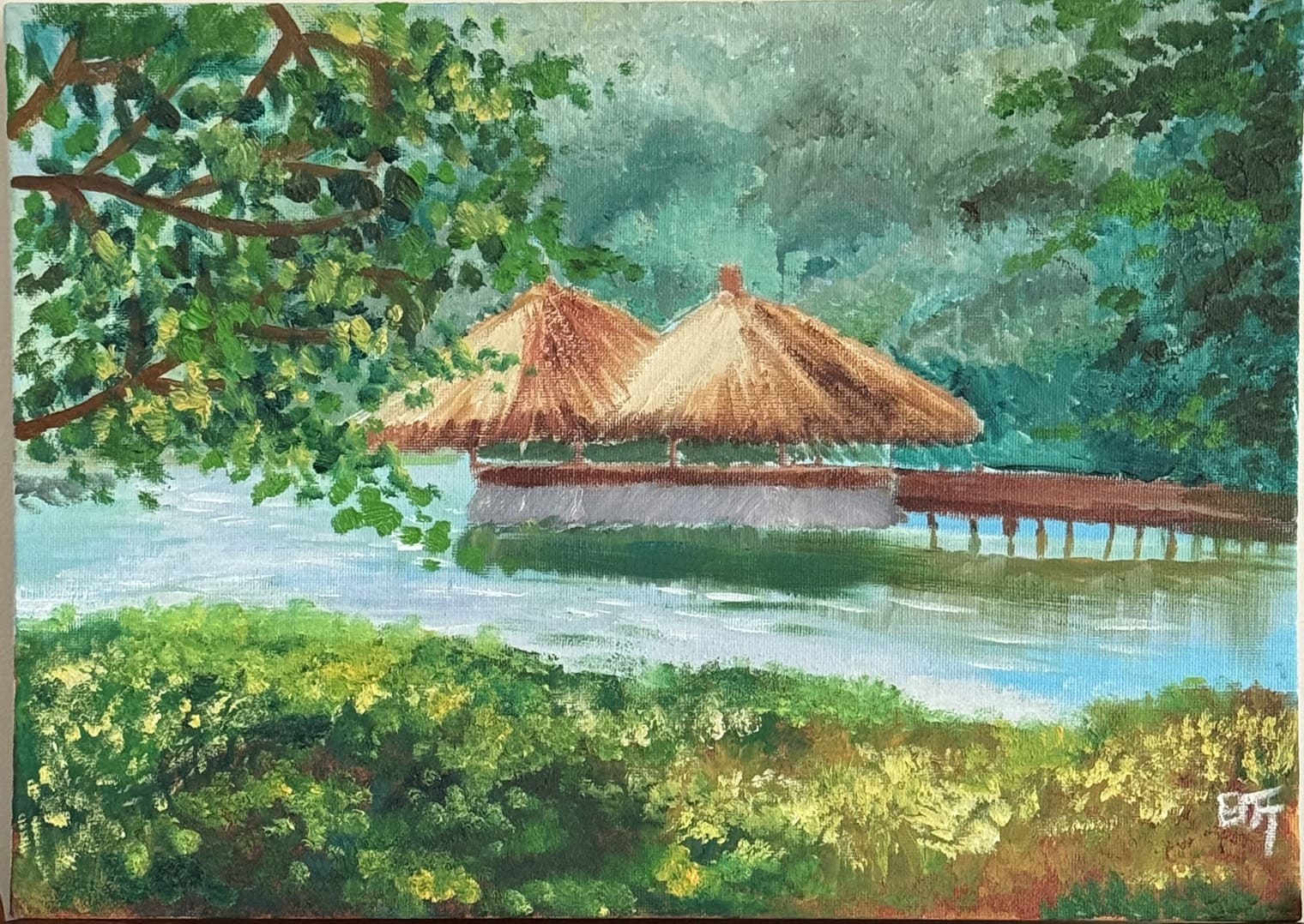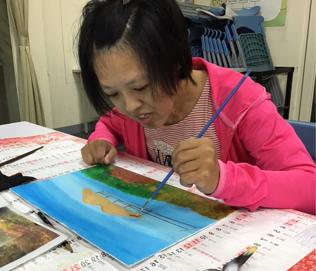 我是一個腦性麻痺障礙者,有個不為人知的小故事,當年在我出生時,因為我在媽媽肚子裡腸子吸收異常脹大,醫生判斷錯誤讓媽媽自然產,因為我肚子帳大卡在媽媽的產道過久,導致我腦部缺氧,一出生因腸子異常馬上開刀,進保溫箱直到滿月,因為腦性麻痺造成運動神經功能失調而行動不便,一直復健到國小六年級,復健醫院介紹台北骨科權威到中部的醫院,爸媽就立刻帶我去看醫生,經過評估後需開刀,爸媽就家裡和醫院兩邊奔波,出院時因為腳打了石膏開貨車躺在後面才可以順利回家,到了家也是一大考驗,因為石膏關係腳成了大字型,二樓上不去只好在客廳的地板上鋪瑜珈墊睡覺,就這樣在樓下睡到拆石膏,再次回診評估醫生說我已經錯過黃金治療期,爸媽就帶著我到處復健到現在,高職畢業後找工作四處碰壁受到很多挫折,後來去職訓認識了不少身障朋友,就一個介紹一個又認識到職訓外的身障朋友,聊著聊著就講到畫畫這一塊,讓我想起小時候跟童伴把家裡牆壁當畫板,模糊的塗鴉回憶到現在又接觸了油畫,雖然對油畫很陌生,但是有老師的指導下,讓我對色彩感到興趣,而且學油畫讓生活更充實。
